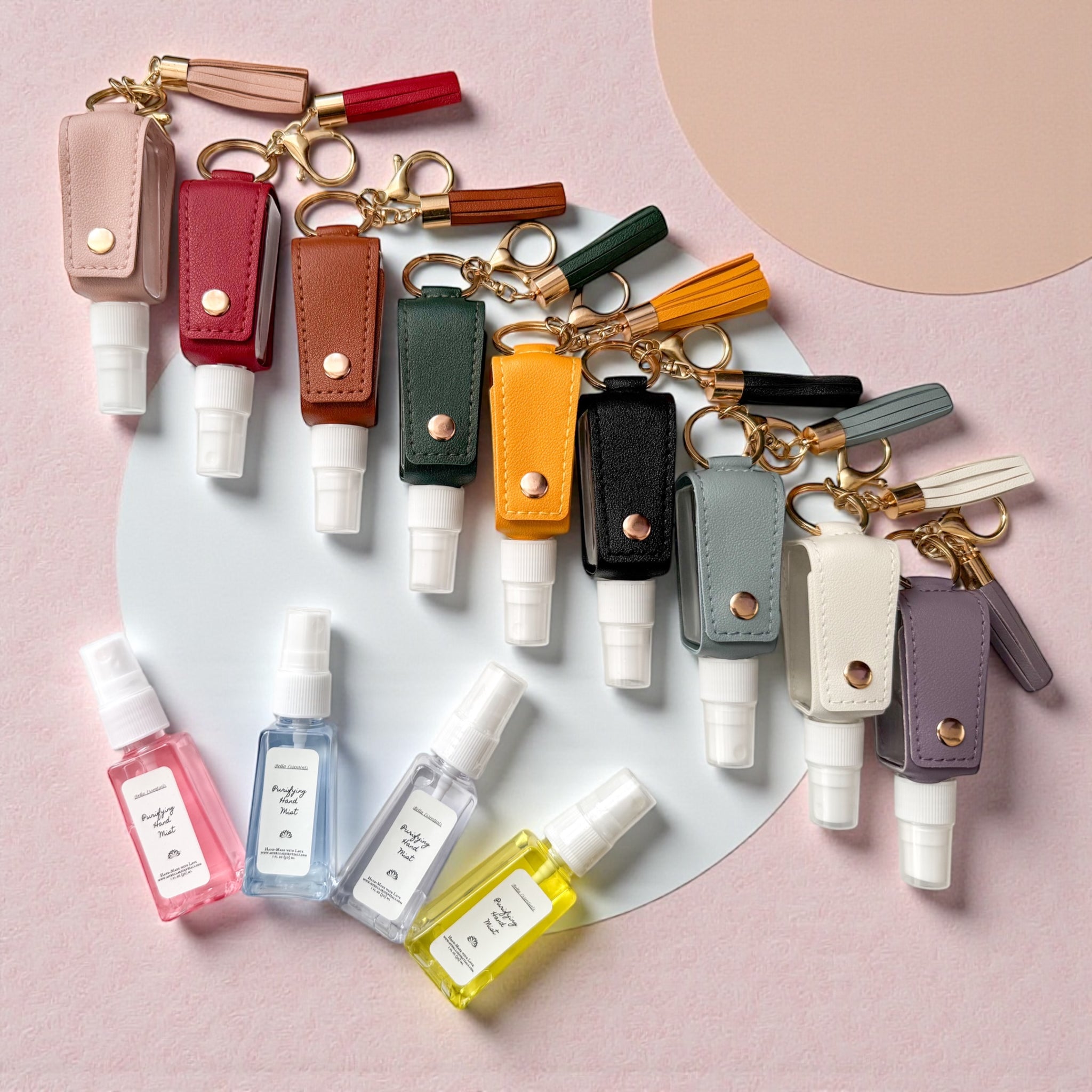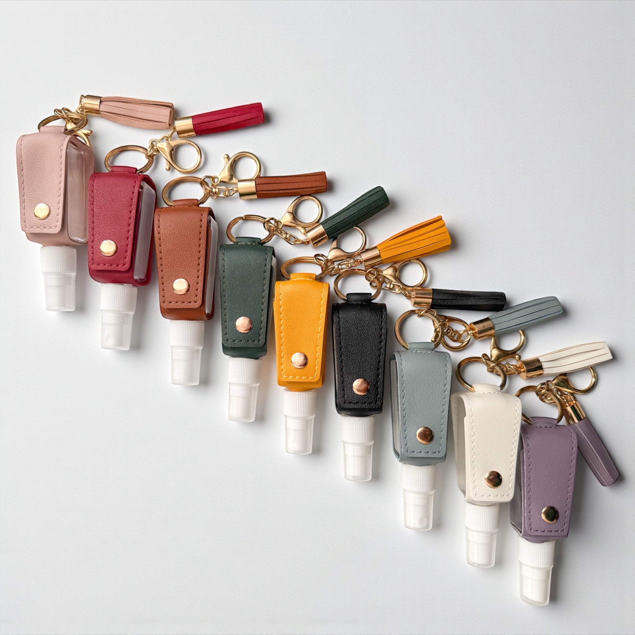 Add a Leather cover The perfect complement to your hand spray. The clip makes it easy to attach to a book bag, gym bag, or a purse.
